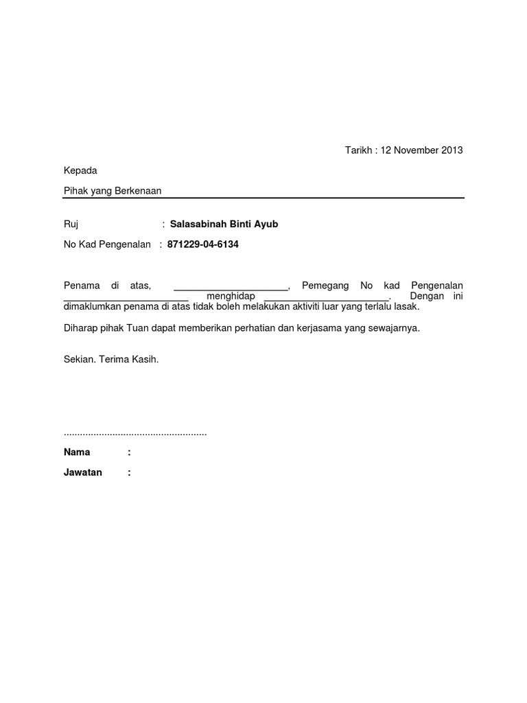 Surat Tak Hadir Ke Sekolah Atas Urusan Keluarga. Kementerian tidak bertanggungjawab jika nombor kad pengenalan digunakan oleh calon lain. CONTOH LAPORAN LATIHAN INDUSTRI 2019.